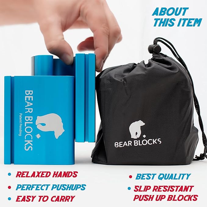 - PERFECT PUSHUPS: The unique grip of Bear Blocks Push Up handles are the ultimate in comfort. These Pushup handles integrate and activate more muscles while protecting your joints from injuries & pain.